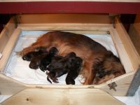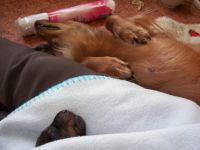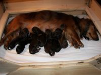 Państwo mówią że można nas jeść łyżkami, dbają o nas, ciepła to nam nie brakuje. Zrobiło się cieplej na Polku i trochę chłodniej w domku dlatego Pan postanowił nam trochę podgrzać kojec żebyśmy miały stała temperaturę. Mamusia jest w coraz lepszej formie chociaż ciężko pracuje, bo wykarmić taką drużynę to ho, ho. Chodzi na długie spacery, a w domku coraz częściej leży poza kojcem. Najczęściej położy się przed nim, żeby mieć nas na oku albo w jakimś strategicznym miejscu żeby nas usłyszeć.