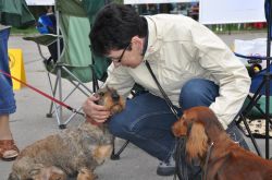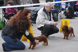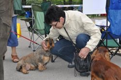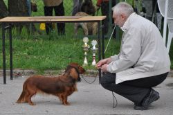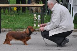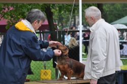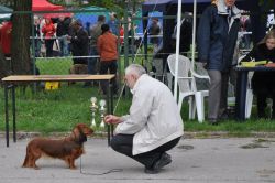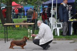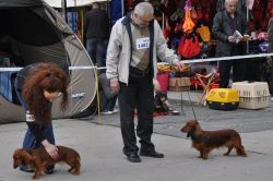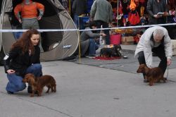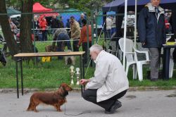 Tradycyjnie na wystawie spotkaliśmy „starych” znajomych. Państwo bardzo się ucieszyli że mogli spotkać Panią Dagmarę która jest opiekunką mojego tatusia, ja zresztą też się ucieszyłam tylko zapomniałam pozdrowić tatusia. Poznali też osobiście Panią Agnieszkę którą znali tylko z emaili. Obydwie Panie przyjechały ze swoimi jamnikami było jak zawsze fajnie, miło i sympatycznie. Poznaliśmy też wielu nowych ludzi i ich jamniki nie tylko długowłose. Każda wystawa to dla mnie nowe doświadczenia i oswajanie się z tą atmosferą w której już czuję się jak ryba w wodzie. Ciekawe jak się będę czuła na mojej 20 wystawie?! Jak rekin?!.